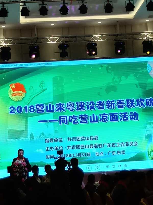 在18年最后的一天里既(2018年12月31日)),做為一名地地道道的營山人 宏源玩具公司CEO 李偉先生帶領多員銷售精英參加【2018來粵建設者新春聯歡晚會 ——同吃營山涼面活動】。作為共青團營山縣委駐廣東工作委員會 委員李偉先生,在本次活動中積極組織與推進,促使本次活動圓滿結束。